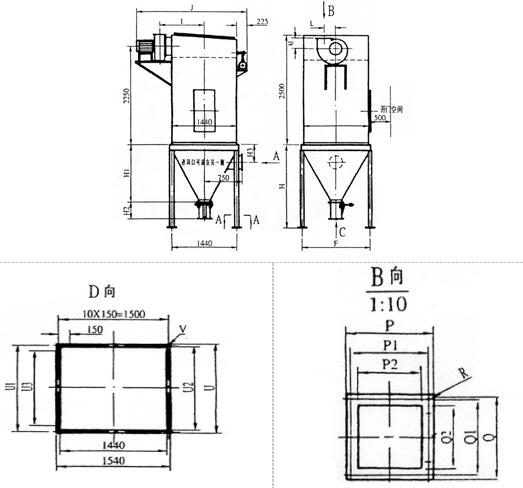 HMC系列脈沖單機(jī)除塵器外形尺寸 |